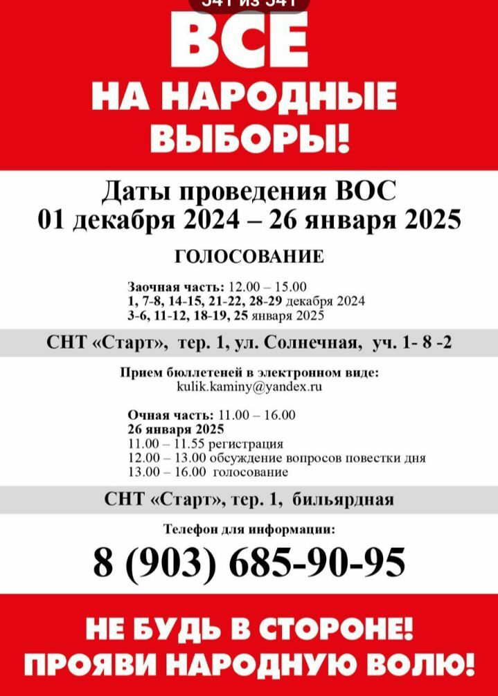 для членов СНТ «Старт», принимающих участие во внеочередном общем